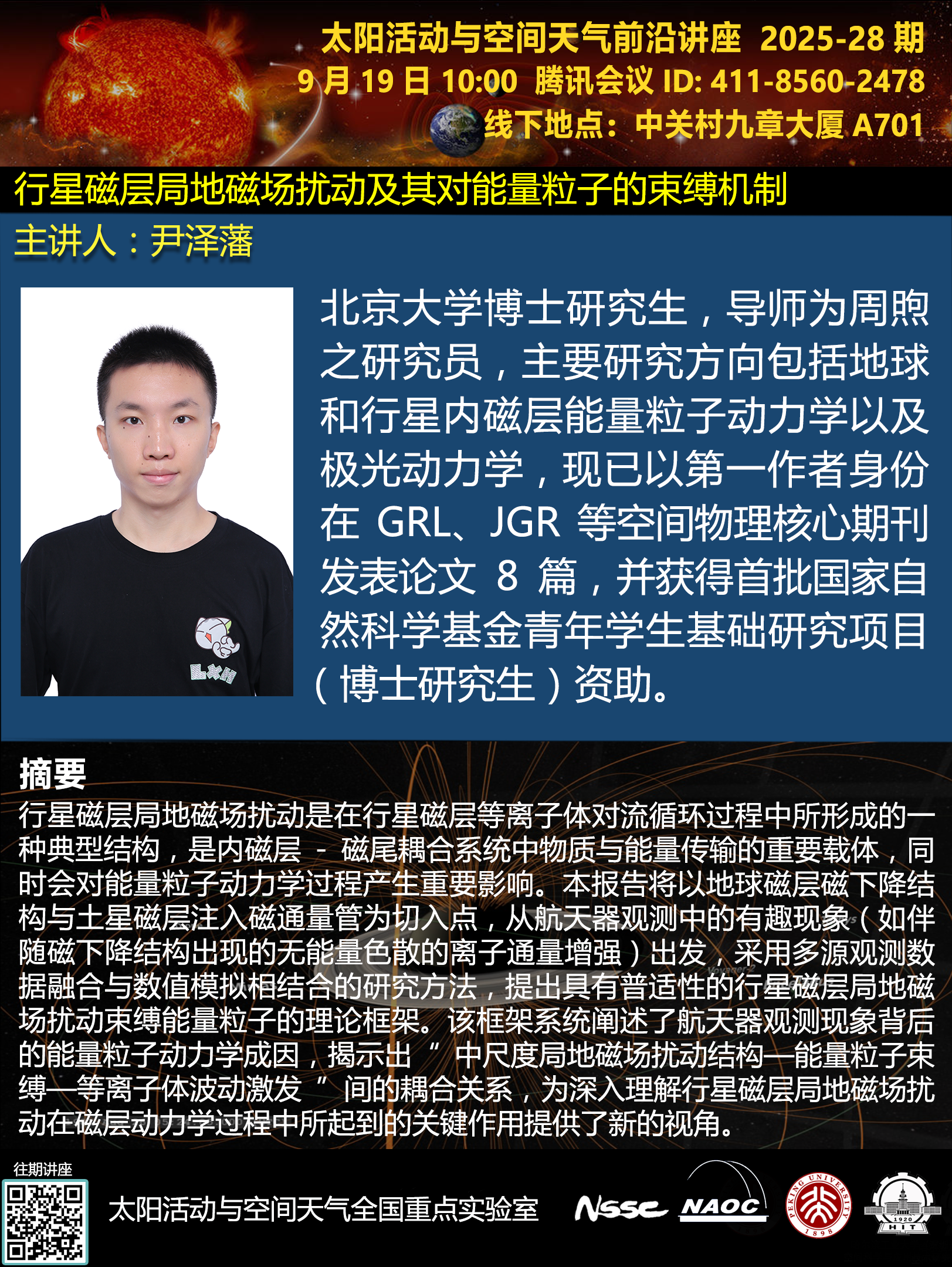 讲座题目:行星磁层局地磁场扰动及其对能量粒子的束缚机制