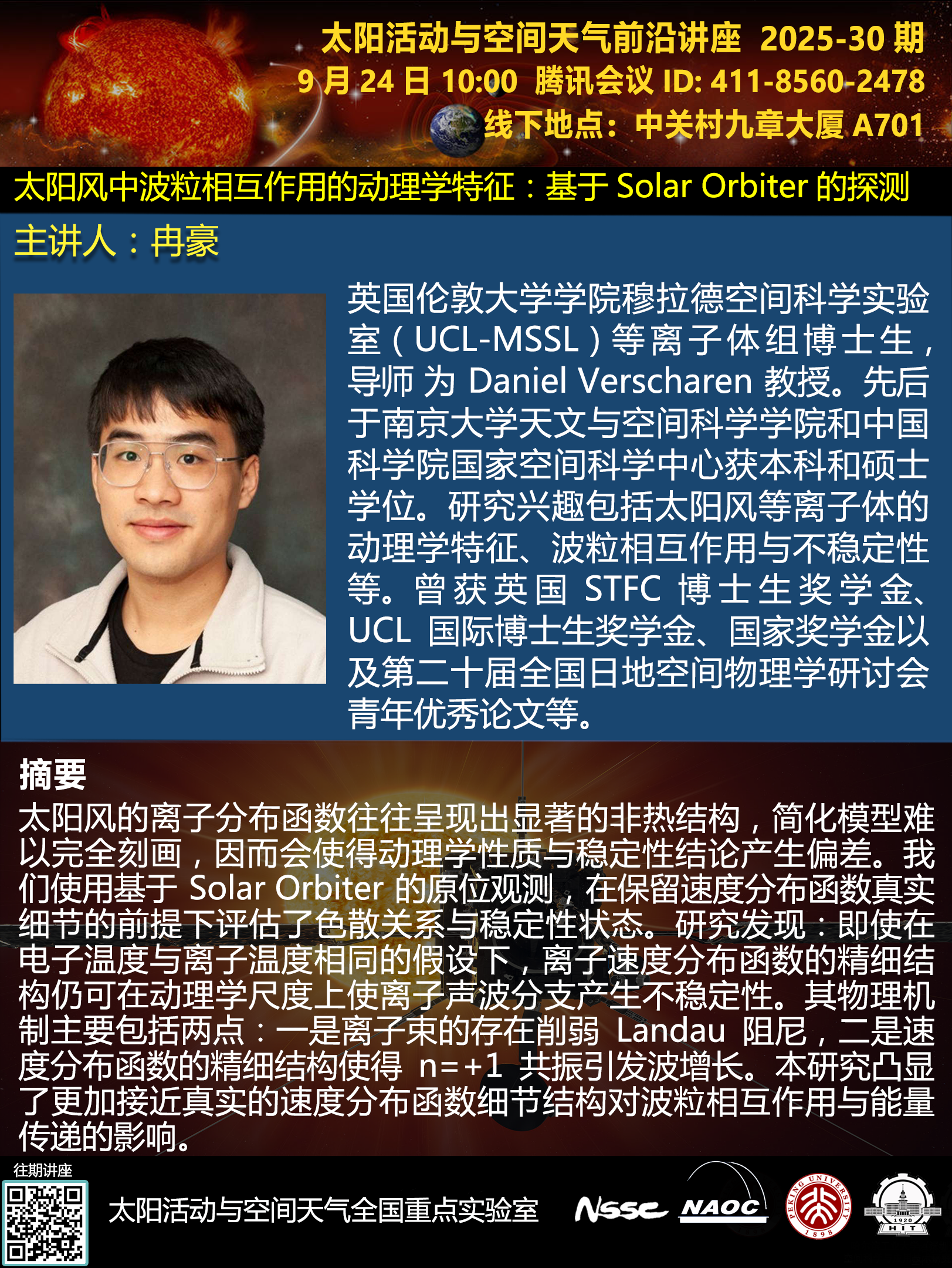 讲座题目:太阳风中波粒相互作用的动理学特征:基于Solar Orbiter的测量