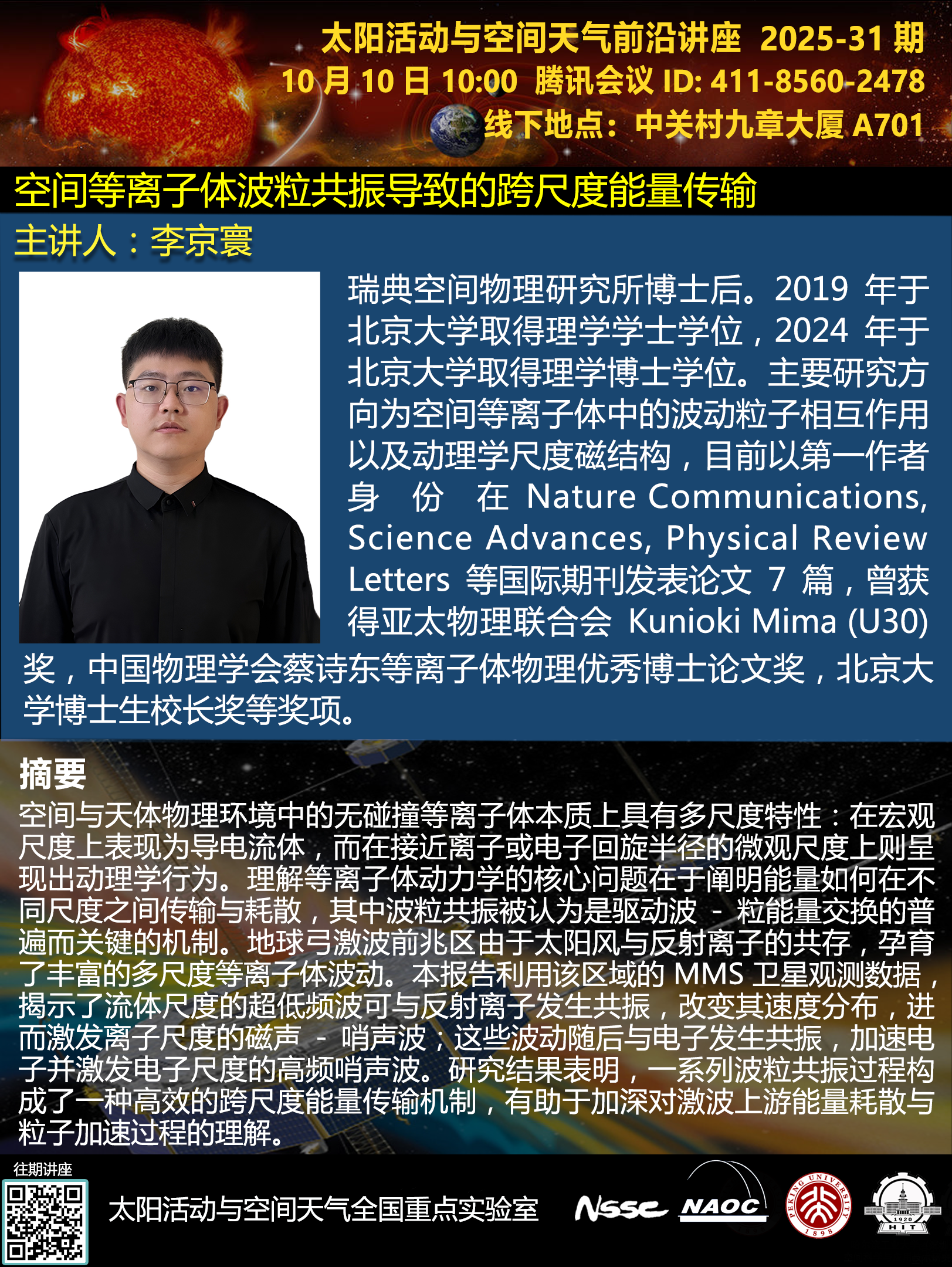 讲座题目:空间等旁子体波粒共振导致的跨尺度能量传输